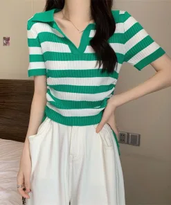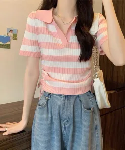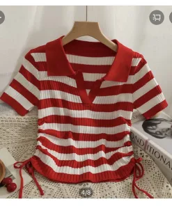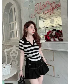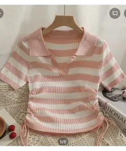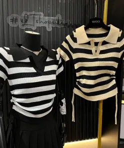 ÁO LEN POLO HỌA TIẾT KẺ NGANG PHỐI DÂY RÚT 2 BÊN