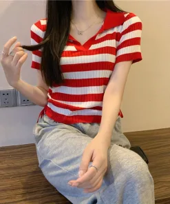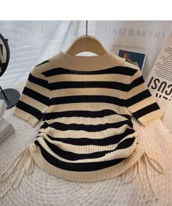 – Họa tiết kẻ sọc làm điểm nhấn nổi bật cho chiếc áo