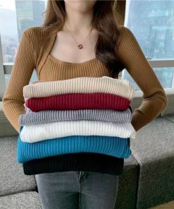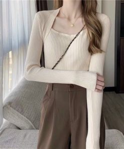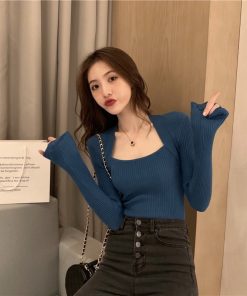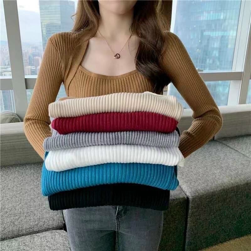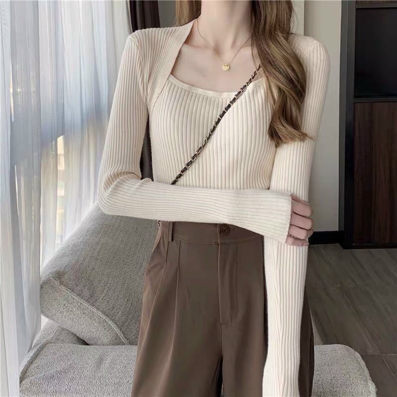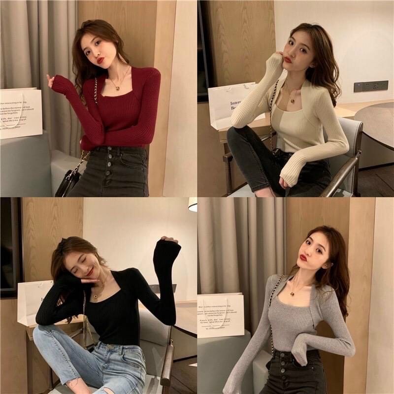 ÁO LEN TĂM DÀI TAY CỔ VUÔNG CẮT XẺ ĐỘC ĐÁO
