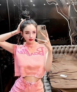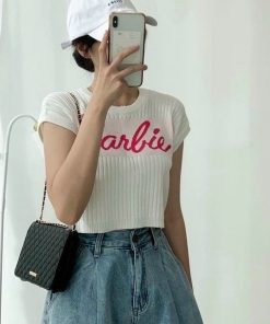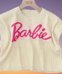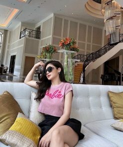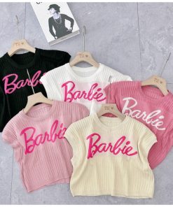 ✔️ Cổ tròn, cộc tay, in chữ Barbie