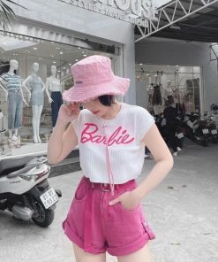 ✔️ Cổ tròn, cộc tay, in chữ Barbie