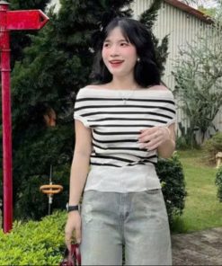 Áo Len Nữ, Áo Len Kẻ Trễ Vai Áo Len Nữ Dáng Ôm Siêu Xinhh