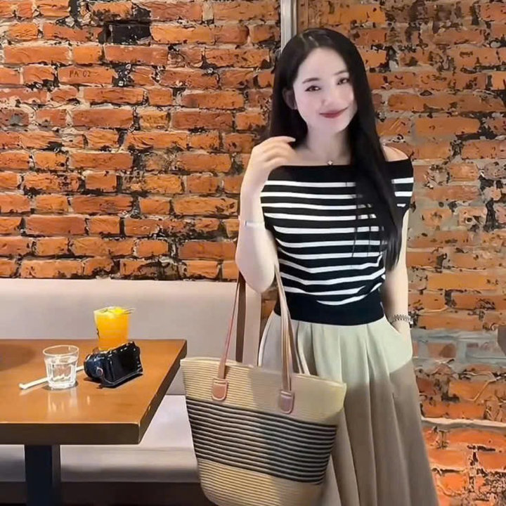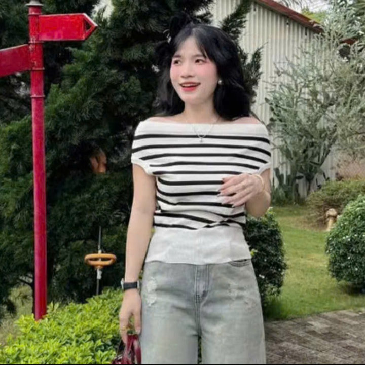 Áo Len Nữ, Áo Len Kẻ Trễ Vai Áo Len Nữ Dáng Ôm Siêu Xinhh