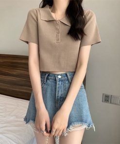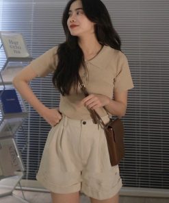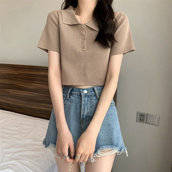 – Áo thiết kế với tone màu trẻ trung, dáng ngắn phối khuy giữa