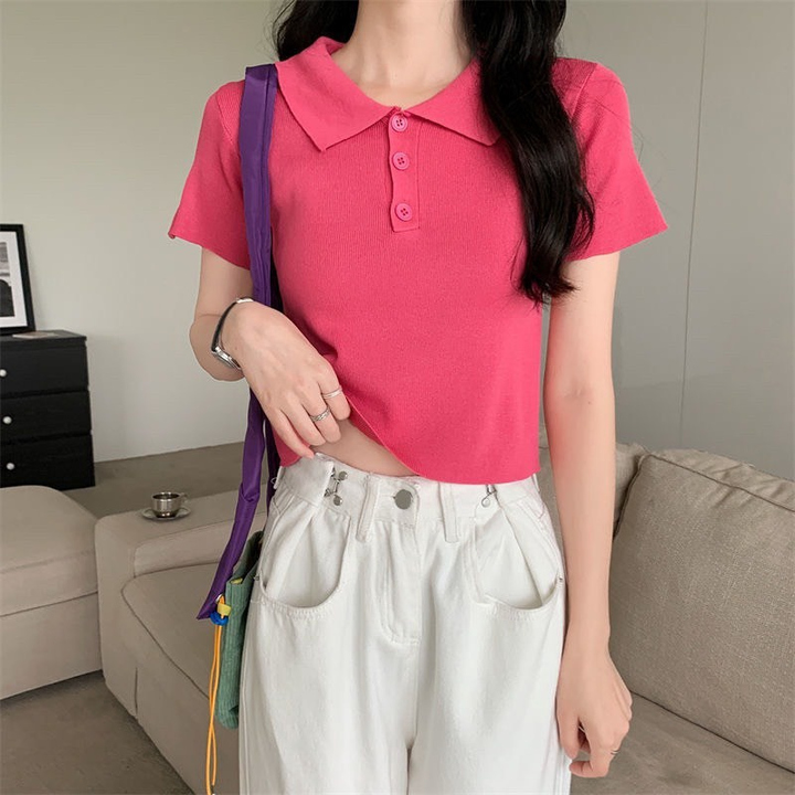 ÁO LEN TRƠN 3 KHUY TRƠN CỔ ĐỨC DÁNG CROPTOP TRẺ TRUNG