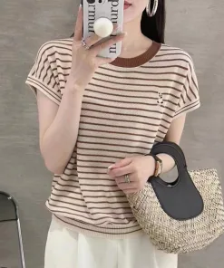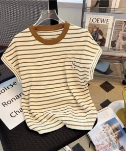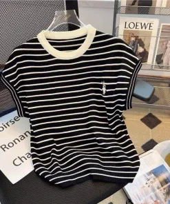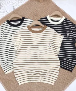 – Aó được thiết kế kiểu dáng sát nách, họa tiết kẻ ngang mix với hình thỏ thêu trước ngực độc đáo