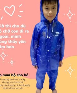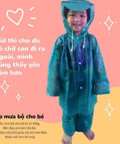 Bộ áo mưa là sản phẩm giúp bảo vệ bé tốt trong những ngày mưa. Bộ áo mưa với thiết kế áo rời quần, mũ liền, nút gài dễ dàng sử dụng. Sản phẩm làm từ chất liệu nhựa bền và chống thấm nước. Màu sắc tươi sáng đẹp mắt, tạo sự thích thú cho bé khi mặc, không gò bó.