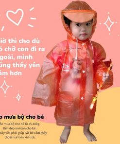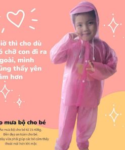 – Hàng áo mưa không co giãn như quần áo vải thông thường. Lúc mặc các ba mẹ nên từ từ mặc, tránh bé quá hiếu động sẽ mau hư hỏng ạ