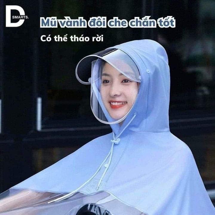 ➖ Áo mưa có kèm mũ và kính chắn chống nước rơi vào mặt vào kính – mọi người nhớ bóc lớp nilong mờ phủ 2 mặt kính chắn ra nhé, kính sẽ trong suốt.