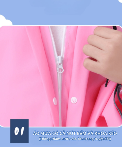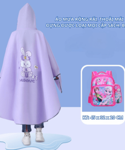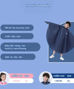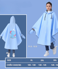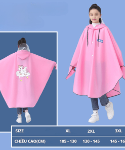 – Áo mưa cho bé gồm: 1 áo mưa và 1 túi đựng áo mưa cùng màu xinh xắn