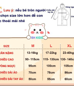 – Áo mưa cho bé gồm: 1 áo mưa và 1 túi đựng áo mưa cùng màu xinh xắn