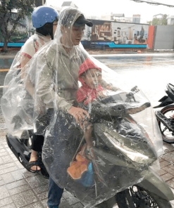 – Áo mưa thiết kế màu trắng trong suốt, tiện lợi cùng tay cánh dơi rộng rãi giúp che mưa hiệu quả mà không vướng víu khi chạy xe.