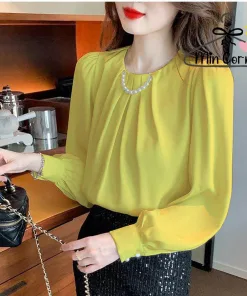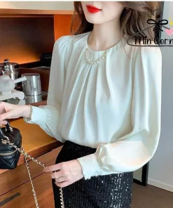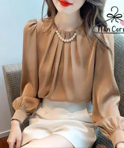 Tên sản phẩm: ÁO NỮ CỔ TRÒN PHỐI CHUỖI NGỌC TAY DÀI MS67 – MIN CORNER