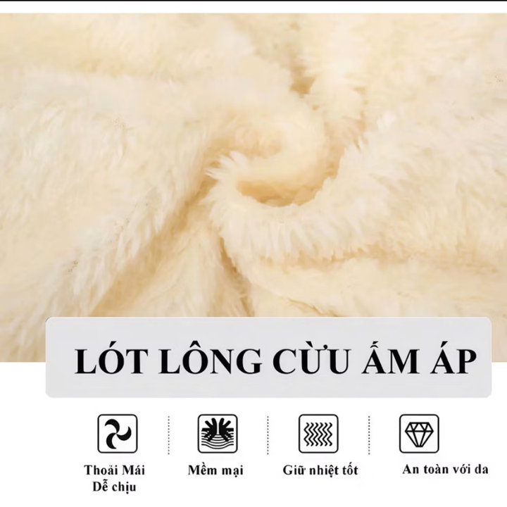 Bên ngoài là lớp chống gió, phao mịn, nhẹ tênh mà ấm áp. Bên trong là lông cừu mềm như mây, sờ vào cực sướng tay, mặc lên là chỉ muốn ôm hoài không muốn cởi.