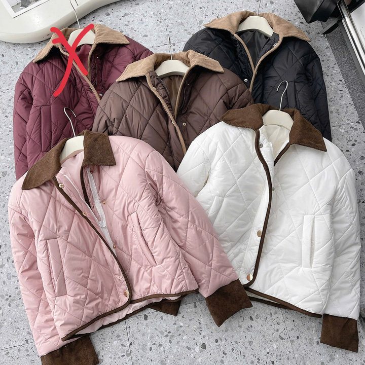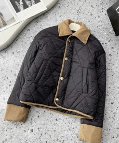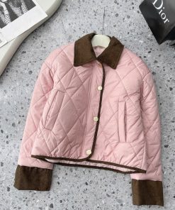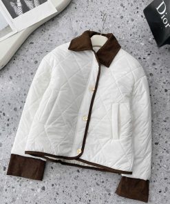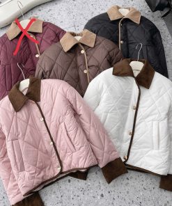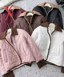 Nếu bạn thích kiểu áo phao gọn gàng, không quá phồng nhưng vẫn đủ ấm thì em này đúng là lựa chọn rất đáng thử. Thiết kế **trần trám basic**, phối **viền nhung ở cổ, tay và gấu áo** tạo điểm nhấn tinh tế, nhìn nhẹ nhàng mà vẫn sang xịn hơn hẳn áo phao thường.