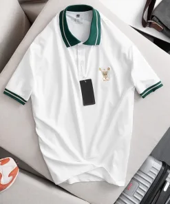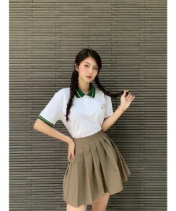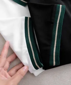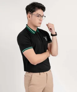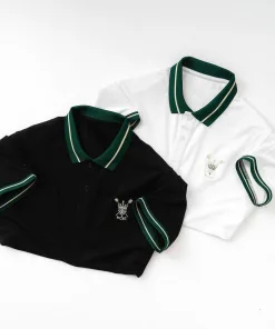 – Dáng áo ngắn tay cổ bẻ có phối sọc viền màu ở cổ và tay áo