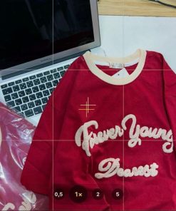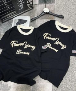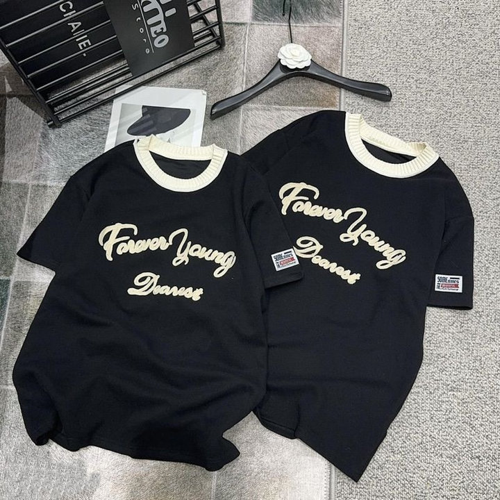 ÁO PHÔNG CỘC TAY CỔ BO HỌA TIẾT CHỮ FOREVER YOUNG CỰC XINH DÀNH CHO BẠN NỮ