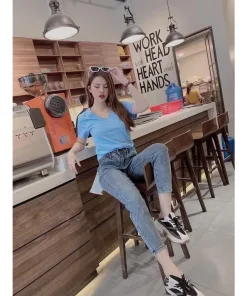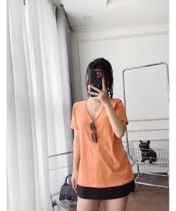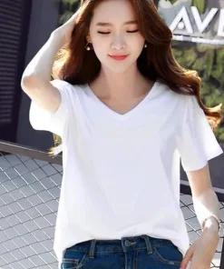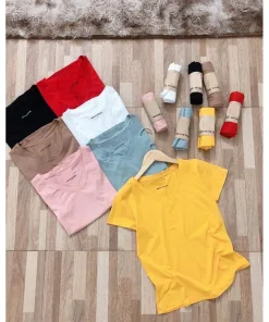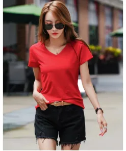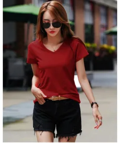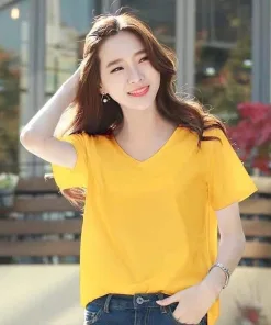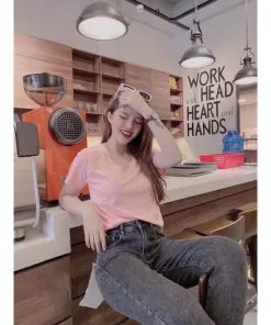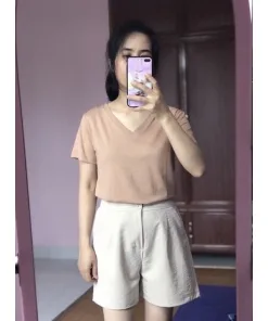 – Áo thiết kế dáng ngắn tay, cổ tim trẻ trung năng động