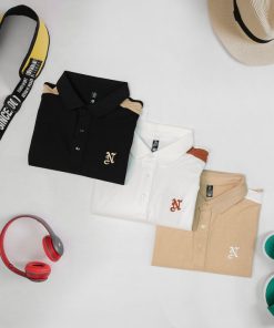 AÓ POLO CỘC TAY PHỐI MÀU CỔ BASIC THÊU N SANG TRỌNG ,TRẺ TRUNG 2024