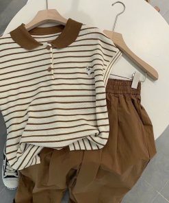 – Aó được thiết kế kiểu dáng sát nách, họa tiết kẻ ngang mix với hình thỏ thêu trước ngực độc đáo