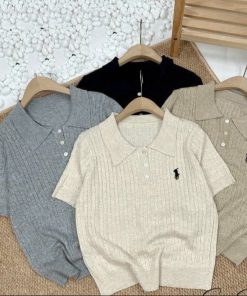 ÁO POLO LEN DỆT KIM CỔ BẺ THÊU NGỰA