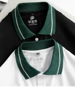 ⚜️Dáng áo ngắn tay cổ bẻ có phối sọc viền màu ở cổ và tay áo