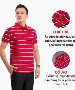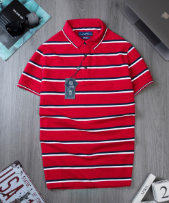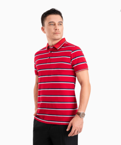 áo Polo Nam Ngắn Tay Kẻ Ngang đỏ-navy-trắng Algplo96 – Aligro