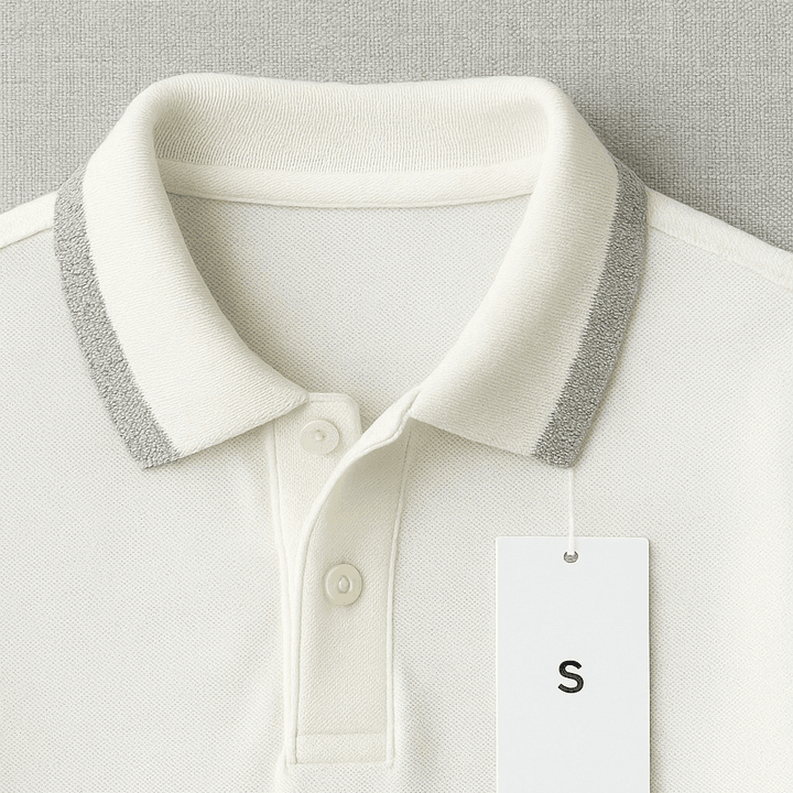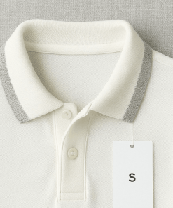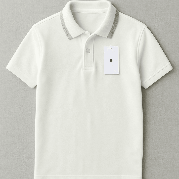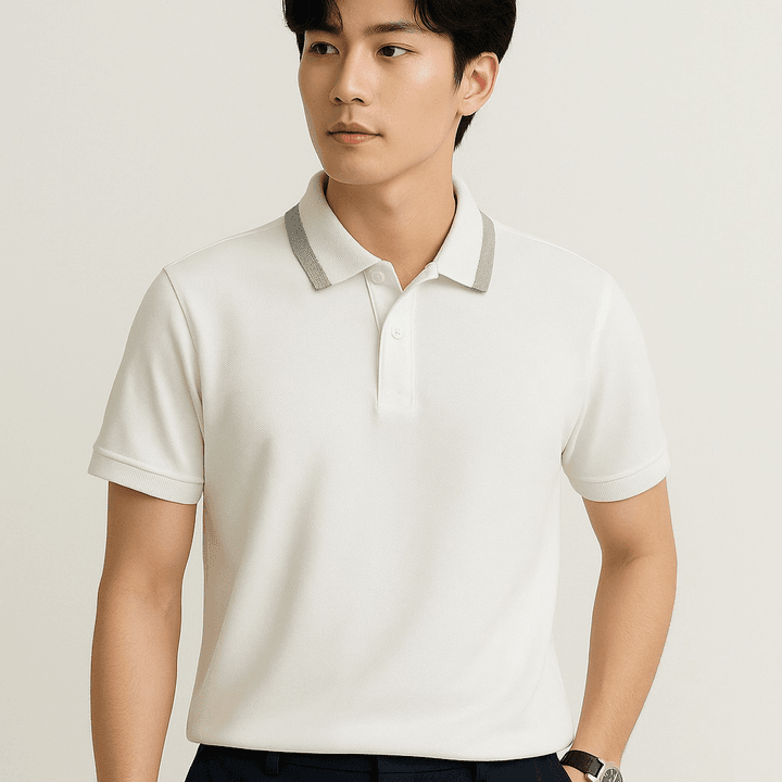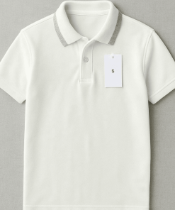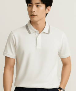 Chiếc áo polo trắng thanh lịch với thiết kế đơn giản nhưng đầy tinh tế, phù hợp cho nhiều hoàn cảnh như đi học, đi làm, dạo phố hay gặp gỡ bạn bè. Điểm nhấn là phần cổ áo phối sọc xám tạo nên nét phá cách hiện đại, dễ phối đồ với nhiều phong cách khác nhau.