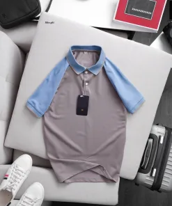👉Dáng áo ngắn tay cổ bẻ có phối viền cổ và viền tay