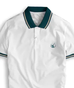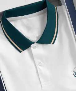 ⭐Dáng áo ngắn tay cổ bẻ màu xanh có viền cổ và tay màu vàng