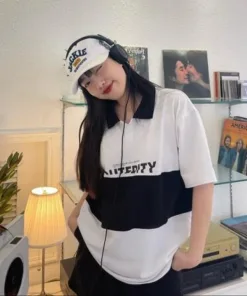 - Tên Sản phẩm: Áo polo Unisex nam nữ form rộng Phối màu đen trắng