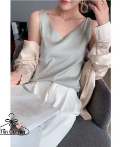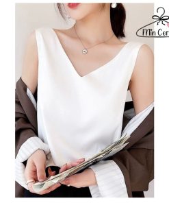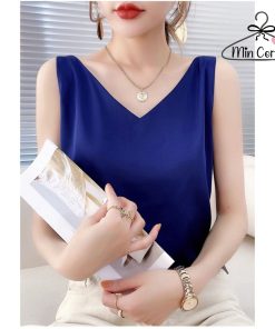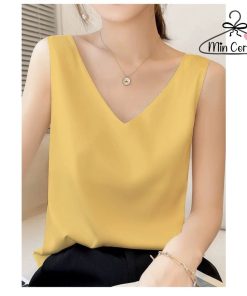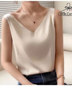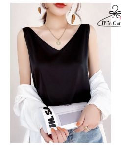 Tên sản phẩm: ÁO SÁT NÁCH TRƠN CỔ V CHẤT LỤA SATIN MỀM MỊN MS5 – MIN CORNER