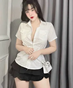 Tên sản phẩm: ÁO SƠ MI 2 TÚI CHẤT LỤA HÀN – LÊ PHƯƠNG BOUTIQUE