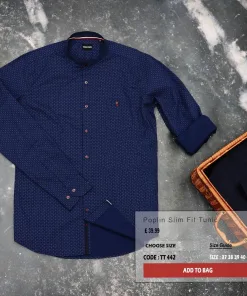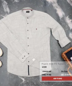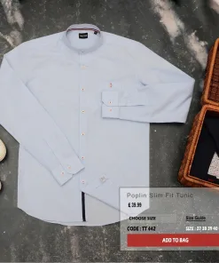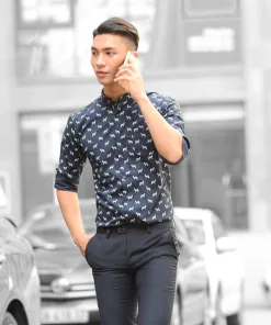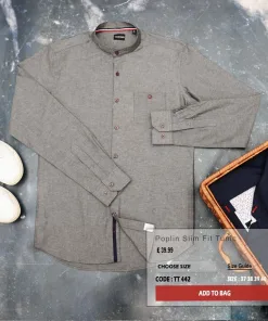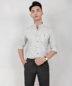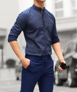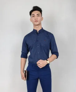 ● Kiểu dáng : Slim fit dáng ôm, cổ tàu, tay dài. Khuy cúc cổ điển.