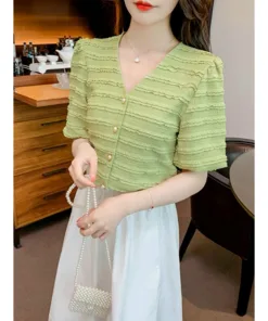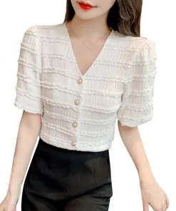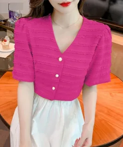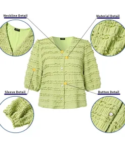 – Áo được thiết kế tinh tế, nhẹ nhàng tiểu thư với phần đường viền nổi kết hợp cúc cài vô cùng tinh tế