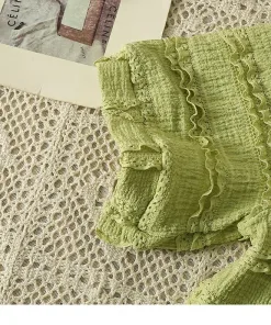 – Dáng tay áo lửng, hơi phồng giúp che khuyết điểm phần bắp tay