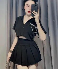 Tên sản phẩm: ÁO SƠ MI CROPTOP PHỐI XÍCH – LÊ PHƯƠNG BOUTIQUE