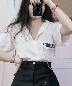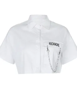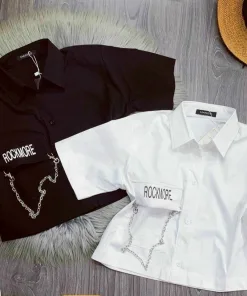 Áo sơ mi croptop phối xích cá tính, năng động, đầy mới lạ.