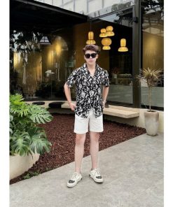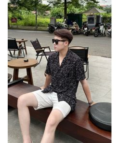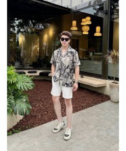 – Áo sơ mi CUBAN SHIRT cộc tay nam TUTO5 Menswear SCB01 – vải lụa hàn họa tiết form regular fit