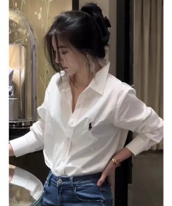 ÁO SƠ MI DÀI TAY THÊU HÌNH NGỰA, CHẤT LIỆU COTTON MỀM MÁT DÀNH CHO BẠN NỮ