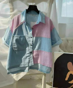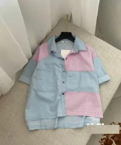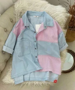 ÁO SƠ MI JEAN TAY NGẮN PHỐI MÀU XINH XẮN – KIM