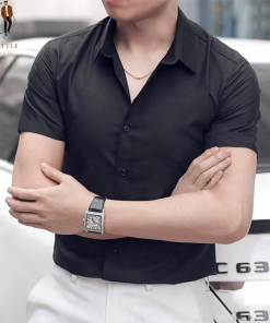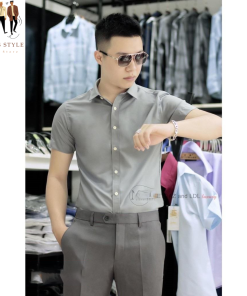 Áo sơ mi Nam cộc tay dáng Hàn, dáng slim, chất Poly Chéo