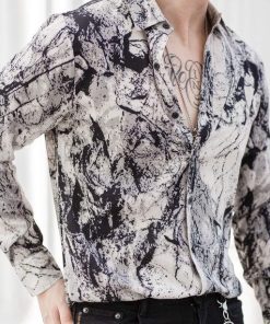 Với hoạ tiết loang mềm mịn, chiếc sơ mi này không chỉ thu hút mắt bởi vẻ đẹp tinh tế mà còn tạo điểm nhấn riêng biệt trong bất kỳ bữa tiệc hay sự kiện nào. Sự kết hợp giữa sự tinh tế và cá tính mạnh mẽ khiến bạn nổi bật giữa đám đông.