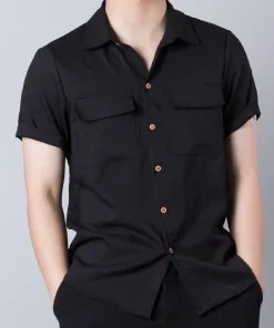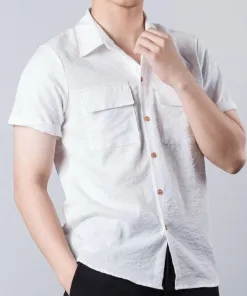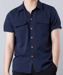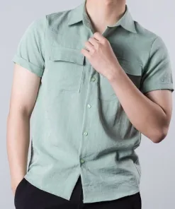 Áo sơ mi nam ngắn tay cổ bẻ túi hộp chất vải đũi cực mát