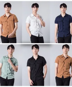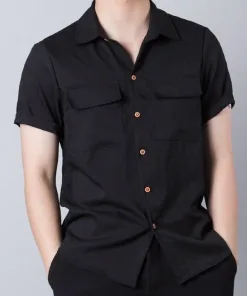 Áo sơ mi nam ngắn tay cổ bẻ túi hộp chất vải đũi cực mát