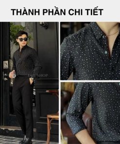 Áo Sơ Mi Nam , Sơ Mi Lụa Đính Đá Thiết Kế Đuôi Tôm Trẻ Trung