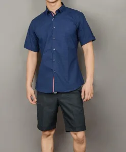 ● Kiểu dáng : Slim fit dáng ôm, trơn, ngắn tay. Khuy cúc cổ điển.
