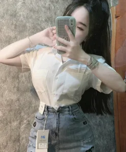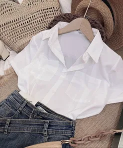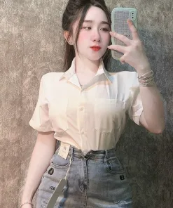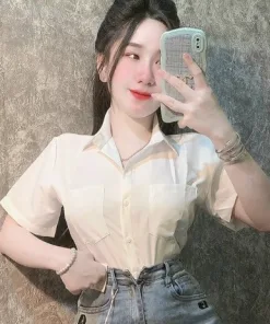 Tên sản phẩm: ÁO SƠ MI NỮ KATE NHẬT 2 TÚI XINH – LÊ PHƯƠNG BOUTIQUE