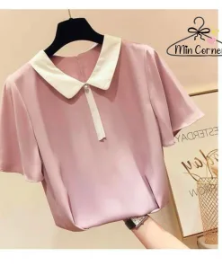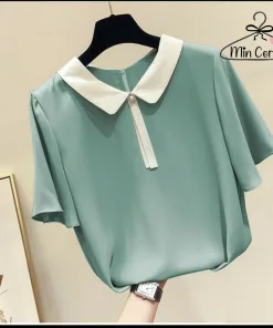 Tên sản phẩm: ÁO SƠ MI NỮ KIỂU HÀN QUỐC CỔ PHỐI TRẮNG CHẤT TƠ CAO CẤP MS4 – MIN CORNER