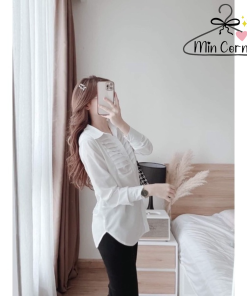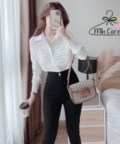 ÁO SƠ MI NỮ TAY DÀI NẸP XẾP LY THÂN ÁO CHẤT LỤA HÀN MS11 – MIN CORNER